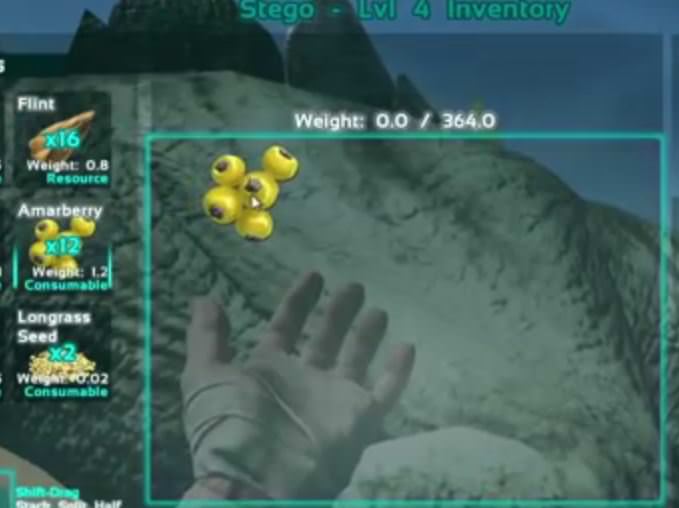 草食恐竜をテイムしていたらberriesを恐竜のインベントリにいれましょう。