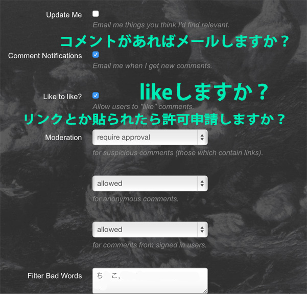 他はコメント欄に対しての各種設定があります。