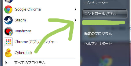 でコントロールパネルをクリック