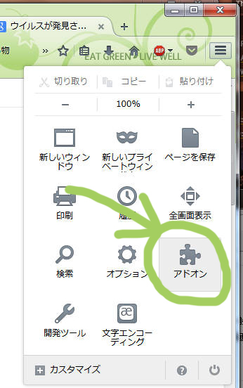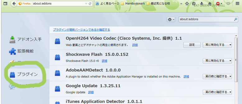 ⑵ブラウザのプラグインに何か入ってないかを確認
