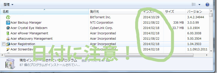 まず PC本体にこれらが入っていないかをチェック(アンインストールする方法) はこの写真通りに進んでください