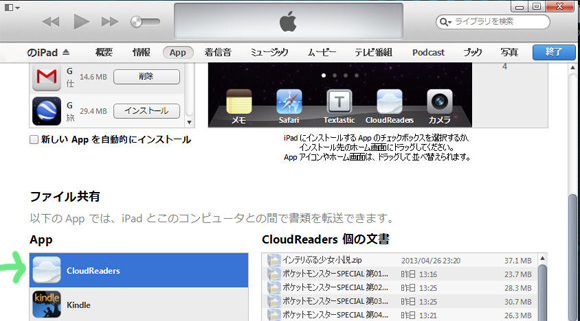 これでipadへの送信は完了! あとは読破するのみです
